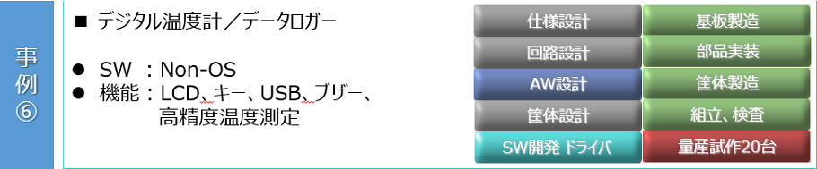 組込みシステム開発における豊富な実績を活かし、試作~量産までの進め方のご提案、技術アドバイスをご提供させて頂きます。
